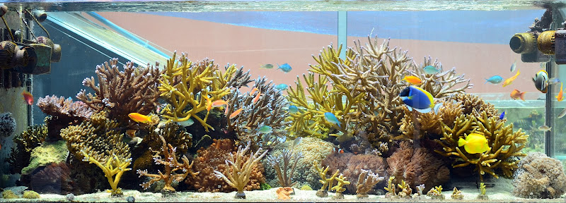 後は、炭素源の添加には、日本でもお馴染みになったVSVを使用したり。ZEOvitのアミノ酸添加剤、MicrobeLiftのバクテリア添加剤、Brightwells社のカリウム添加剤などを使用されているようです。水槽が大きいので、詳細を把握するのが非常に難しいですね。